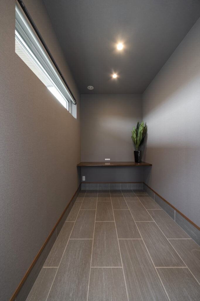 壁と床を落ち着いたグレーで統一し、静かな時間を過ごせる空間に。